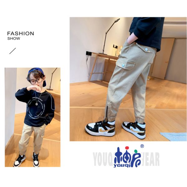 Army Green Black Khaki Boys Twill Pants Size 110-160 High Elasticity Images |