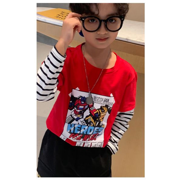 Boy Long-Sleeved T-Shirt Handsome Pure Cotton Boy Spring Clothes New Foreign Fashion Tide